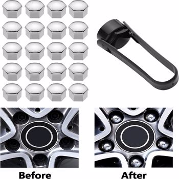 Made from high-quality durable plastic with a chrome finish, these nut covers shield your wheel bolts from dirt, rust, and corrosion, extending their lifespan. Installation is quick and easy with the included black clip tool, allowing you to snap the covers on and off without hassle.