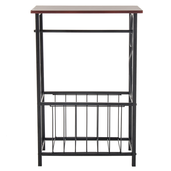 Cups, candles, magazines, and extra rolls of toiler paper will never pine for a place to call their own with this bath table. Handsome scroll work is the centerpiece of the black metal frame, whose legs feature non-mar feet to keep floors unscratched. At the bottom of the frame, a metal cage easily holds magazines or other toiletries, while above it, a removable rung holds two rolls of toilet paper. Meanwhile, the top of the table is a walnut-colored surface, which can hold items such as cups, candles and toothbrush holders. So what are you waiting for?