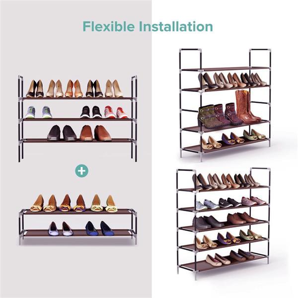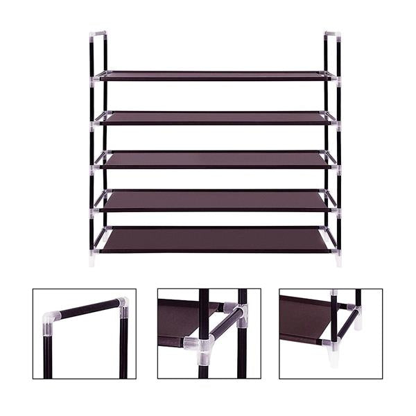 Simple Assembly 5 Tiers Non-woven Fabric Shoe Rack with Handle Dark Brown