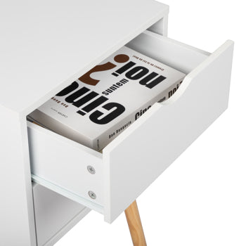 40*30*60cm Simple And Modern White Cabinet, Wood Color Legs, MDF Spray Paint, High Legs, Two Drawers, Bedside Table