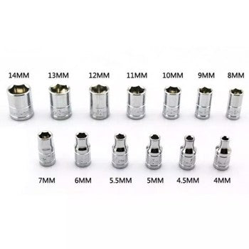 13 pieces of 1/4 hex socket: 4-4.5-5-5.5-6-7-8-9-10-11-12-13-14MM