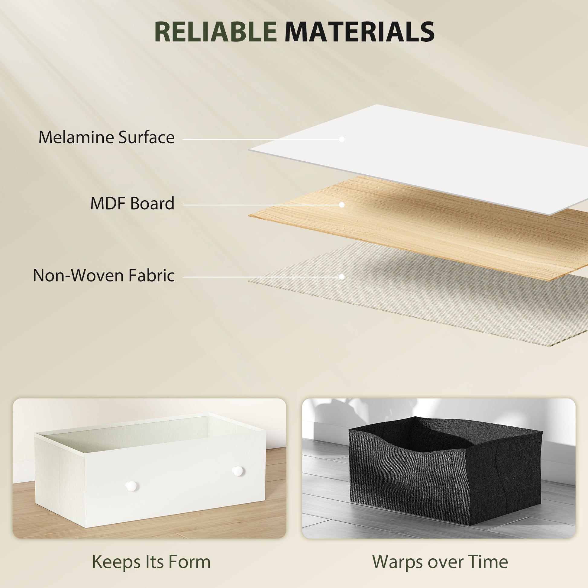 - Six fabric drawers neatly sort clothes, socks and accessories