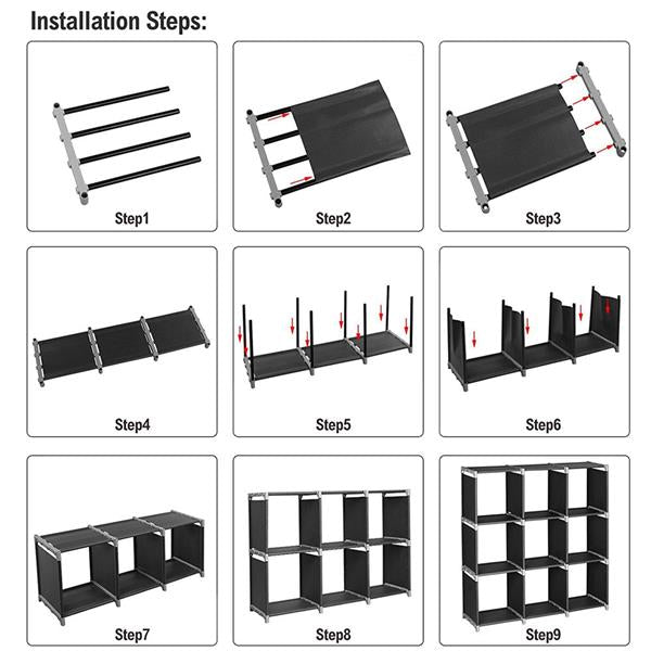 Multifunctional Assembled 3 Tiers 9 Compartments Storage Shelf Black