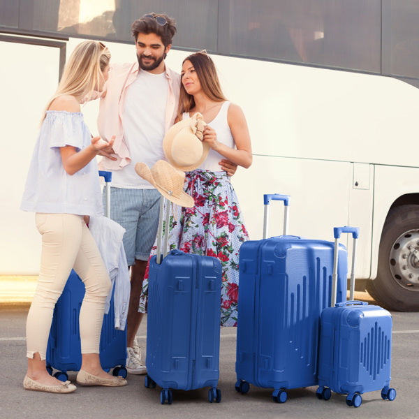 Premium ABS Luggage Set with Diamond Pattern & Non-TSA Locks (4-Piece, Navy Blue)