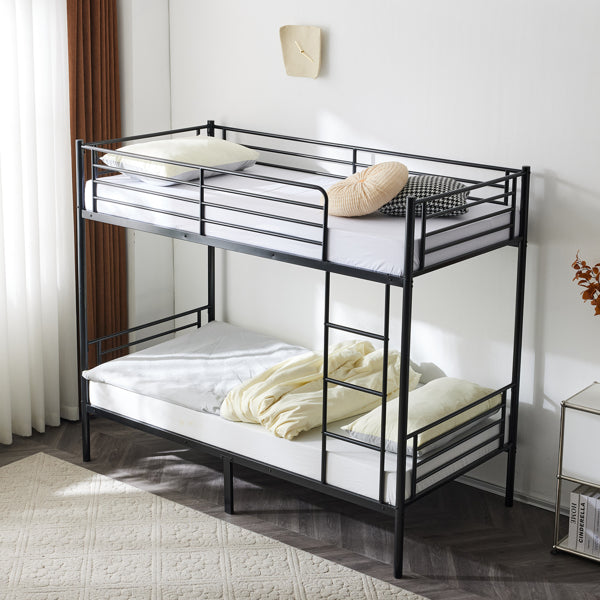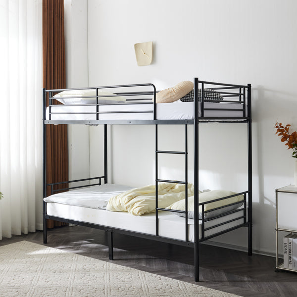 【 Same code 57955699】Twin Over Twin Bunk Bed for Kids Teens Adults, Heavy Duty Metal Bunk Bed with Ladder & Full-Length Guard Rail & Storage Space, Black