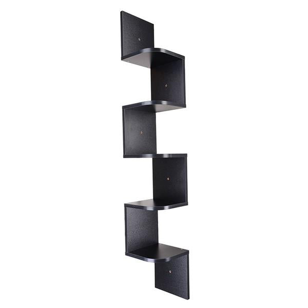 Wood Corner 5 tiers Wall Shelf Zig Zag Wooden Shelves Wooden Mount Rack Home Furniture Black